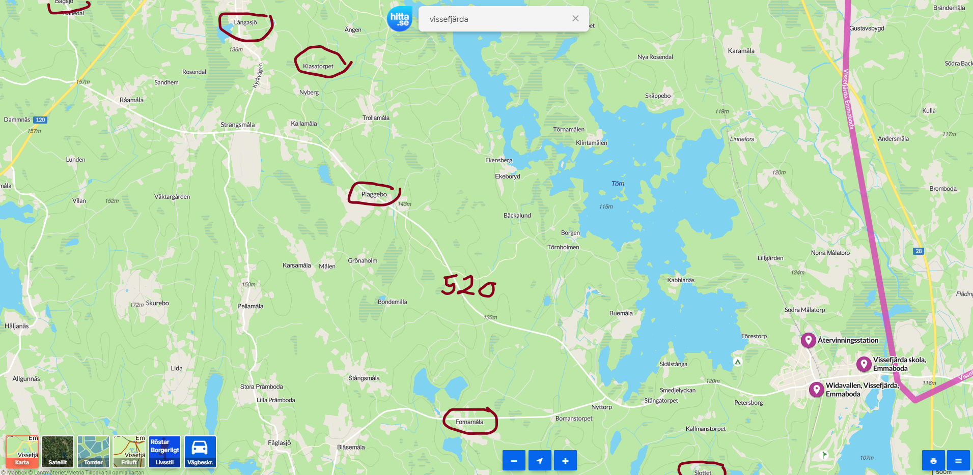 Men nu tänkte jag bila längs väg 520 för att följa mina anmödrar i fotspåren bakåt i tiden och återvänder därför till Vissefjärda. I Fåglasjö i Vissefjärda socken är min mormor Ruth född 1892. Tyvärr föddes hon utanför äktenskapet då äktenskapet med soldaten J.A. Augustsson-Fors uteblev. Mormor har senare i sina memoarer beskrivit hur modern tänkte dränka sig men inte vågade. Jag broderar ut lite: “När Maria Charlotta gick stigen ner till sjön för att dränka sig, visste hon inte att världen stod på tröskeln till en ny tid; en tid med andra värderingar och synsätt, så olik hennes egen. Fostret sparkade i hennes mage som för att protestera inför det kommande. Hur mycket förstår ett litet barn innesluten i det andra vattnet, livmoderns trygga rum, så nära men ändå så fjärran det ofantliga livet utanför med sina solsystem, galaxer och kosmiska avstånd. Kanske förstod hon allt”.