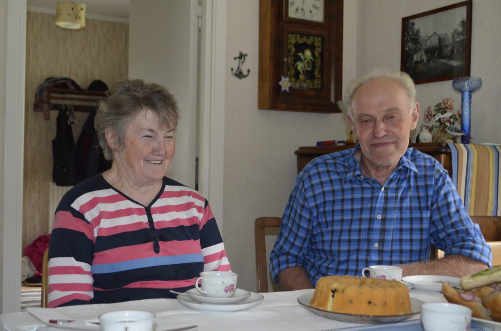 Nu far jag till Ingvar och Solveig Karlsson på Näset. Gården ligger vackert med utsikt över sjön Törn. När jag knackar på öppnar Solveig och det dröjer inte länge förrän kaffekittlen kommer på och det blir fika även hos dem! Jag känner en djup tacksamhet för all den öppenhet och hjälp som getts mig under dessa dagar och avslutningen på resan kan inte bli bättre än detta besök. Solveig och Ingvar visar mig en bild på regnbågen tagen igår kväll. De säger att det var ett märkligt rött sken över hela gården som de aldrig någonsin sett förut, men de hann inte tänka på att fånga det på kamera. Samtidigt dyker en barndomsbekant upp med sin fru på gången upp mot huset och istället för att ganska snart resa hemåt mot Skåne blir jag kvar i flera timmar! Släktforskningen faller bort och istället diskuterar vi världens situation, Sveriges situation och vi känner alla en oro inför hur framtiden ska arta sig med så mycket omvälvningar; terrorn som breder ut sig, miljöförstöringen, den ökade kriminaliteten och det sociala sönderfallet i städerna osv. Men än finns livsglädjen kvar ändå och vi skrattar mycket och ofta runt bordet innan jag bryter upp för att resa.