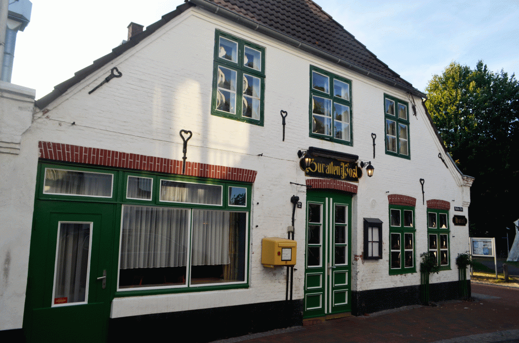 Frau Kolle, som jag bor hos, är en äldre dam ur den kända släkten Kolle i staden. Hennes farfar startade det första hotellet och den gamla matsalen “Alter Muschelsaal” från 1920-talet, med alla sina snäckskal längs väggarna, finns fortfarande kvar med samma traditionella matkultur som förr. Jag spenderar en hel eftermiddag där med att äta, njuta och bli uppassad! Jag tror aldrig att jag har ätit en så god spätta i hela mitt liv! Frau Kolle själv går fram och tillbaka och konverserar med gästerna vid de linnedukade borden. Åh, en sådan höjdpunkt på resan!