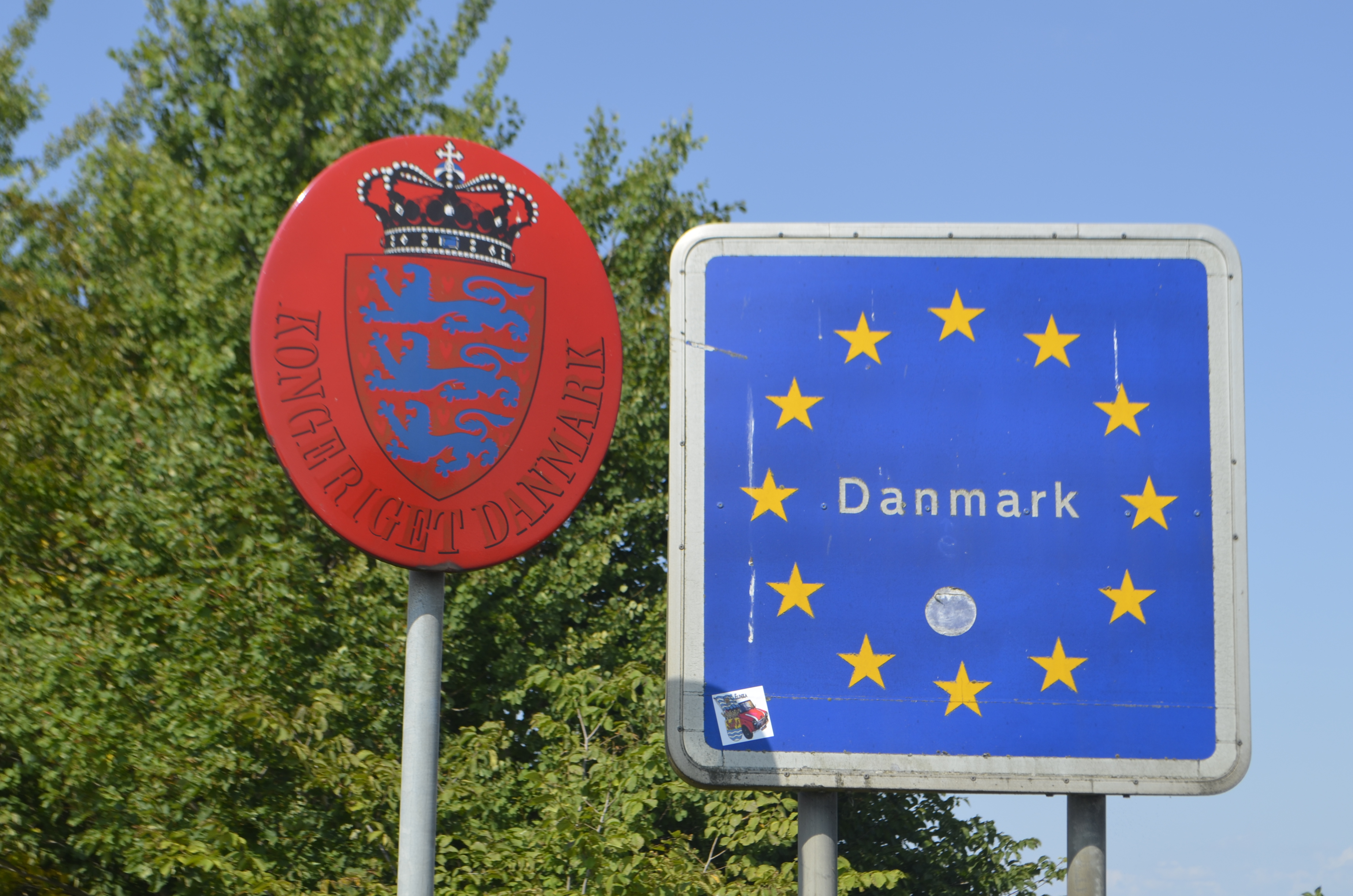 Så närmar jag mig “gränsen” dvs de två skyltar som annonserar att jag nu anträder danskt territorium. Runt skyltarna ligger övergivna hus och pizzerior. Man kan känna hur ödsligt det är nu. Det är bara att passera bäst man vill..