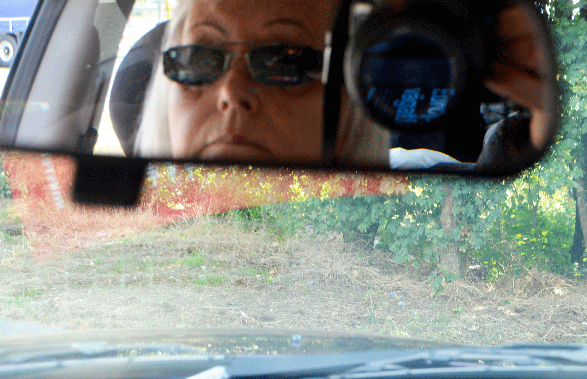 Jag tittar mig i backspegeln för att se om jag fortfarande finns kvar bakom ratten innan jag börjar köra. Det är faktiskt många tårar senare även om jag inte skrivit om det… Min mun ser lika trött ut som mina ögonbryn…