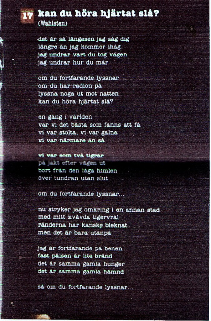 En underbar text från 70-talet av SVARTVITT! Finns på deras samlingsCD (1999 Swingoplan) EN GÅNG TILL. Jag ska sjunga den på Bluesafton på Hornet så småningom!