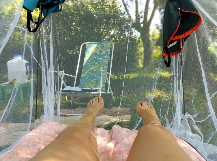 På andra sidan mitt tält bodde en fransman och hans unga hund Radja. Han hade köpt en fastighet i närheten och väntade på att få tillträda den. Radja och jag blev bästa vänner och ibland låg hon utanför mitt tält när jag vaknade på morgonen.. 🙂 Jag tältade utan ström och lagade min mat på min lilla eld.