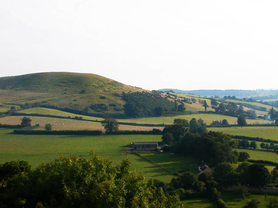 En timme senare sitter jag i lä på Cadbury Castle´s sydsida och äter min apelsin. Vandringen var hård i uppförslutet men inte för svår. Jag känner trygg tillfredsställelse över att jag klarat det så bra. Min blick vandrar över till den andra toppen. Där är mitt slutmål..